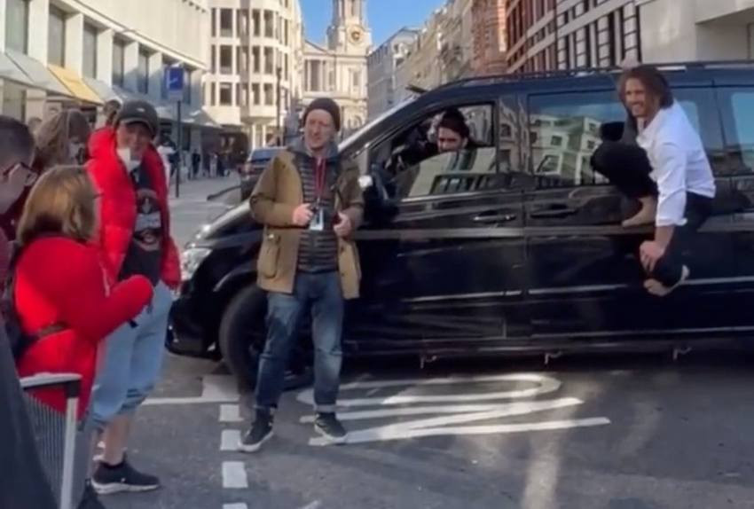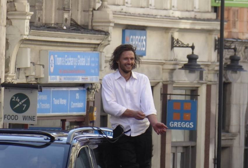 Фанаты Аарона Тейлор-Джонсона делятся фотографиями, на которых их любимец запечатлен во время съемок в лондонском Гайд парке. Артист бежит, облаченный в строгий костюм и белую рубашку, с амулетом звериного клыка на груди.