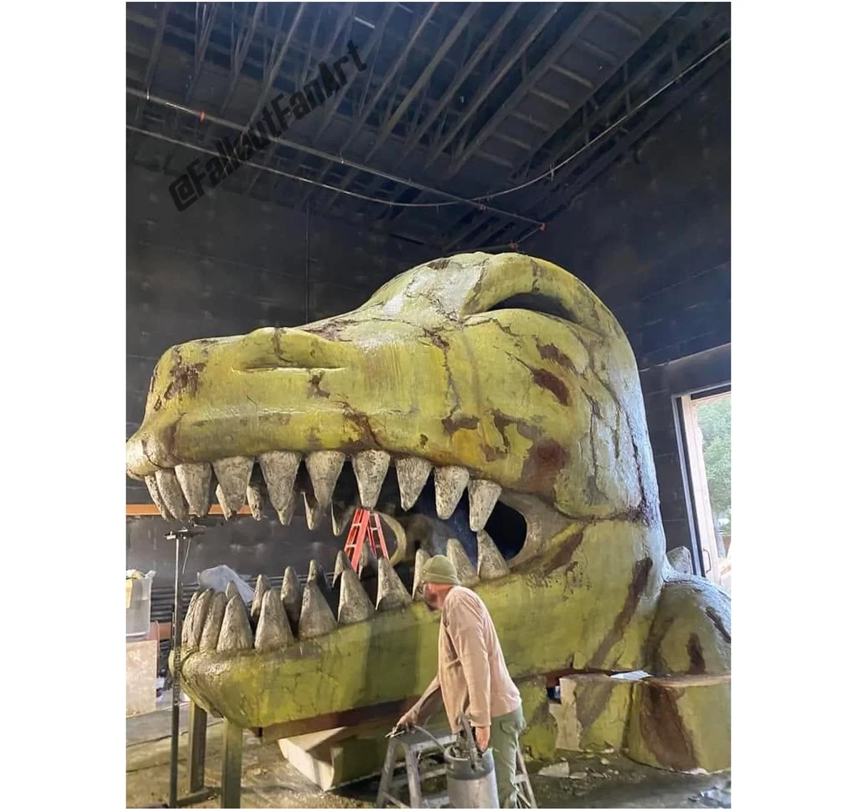 Как мы видим, в съёмочном павильоне расположилась голова Динозавра Динки. Это огромная статуя тираннозавра, символа города Новак. Между челюстей доисторического хищника обустроена снайперская точка, где дежурят Бун и Мэнни Варгас, а в животе находится магазин сувениров «У динозавра».