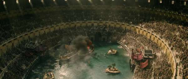 Колизеем, плавающими кораблями и… акулами. Весь этот эпизод выглядит не как