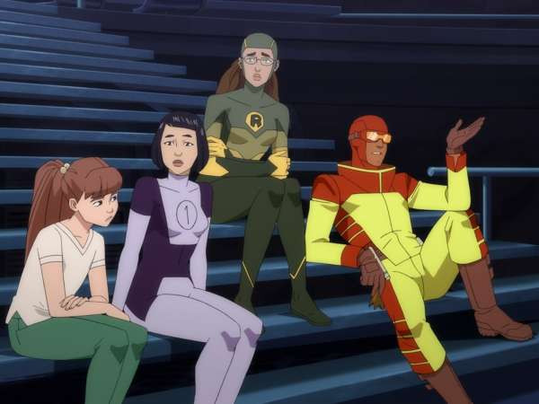 В первой же сцене появляется команда профи, пародирующая героев вселенной DC. Флэша и Бэтмена даже не пытались переделать. Местный аналог Супермена тоже присутствует, но история будет не столько о нем, сколько о юном Марке, его сыне. Быть сыном сильнейшего из супергероев — уже стресс для подростка, а у парня еще и силы все никак не проснутся. Он даже не может, как Питер Паркер, пойти и уговорить паука укусить его.