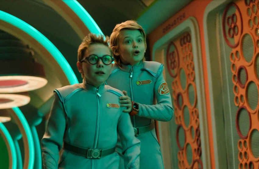 На фотографиях можно увидеть футуристические костюмы и антураж космического корабля. Самих смешариков в привычных для них амплуа нет, зато в двух мальчуганах запросто узнаются образы Кроша и Ёжика.