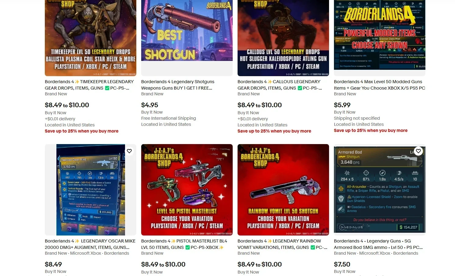Прямо сейчас на eBay есть несколько продавцов с десятками объявлений, которые предлагают приобрести «лучшее оружие» из Borderlands 4, легендарные предметы и лут из сборок известных блогеров. Причём предложение доступно для игроков на всех платформах — PC, PlayStation 5 и Xbox Series. Западные журналисты решили связаться с одним из таких «продаванов» и задать ему вопросы о бизнесе.
