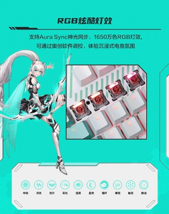 TX98 обладает яркой RGB-подсветкой, которая может отображать 16,8 миллиона цветов. Технология Aura Sync позволяет настраивать подсветку с помощью программного обеспечения Altron. В нём доступны различные предустановленные световые эффекты, такие как «океанское течение», «рябь» и «звёздная ночь».