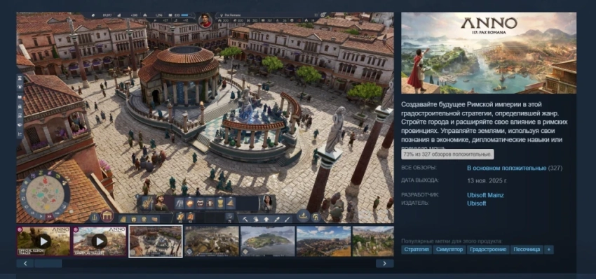 Anno 117: Pax Romana получила «в основном положительный» рейтинг в Steam