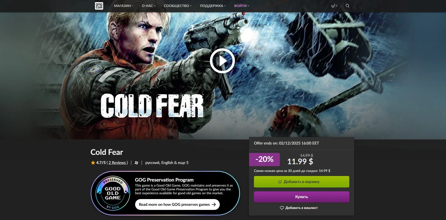 Главная » Статьи » Убранный из продажи в Steam хоррор Cold Fear попал в программу сохранения игр GOG