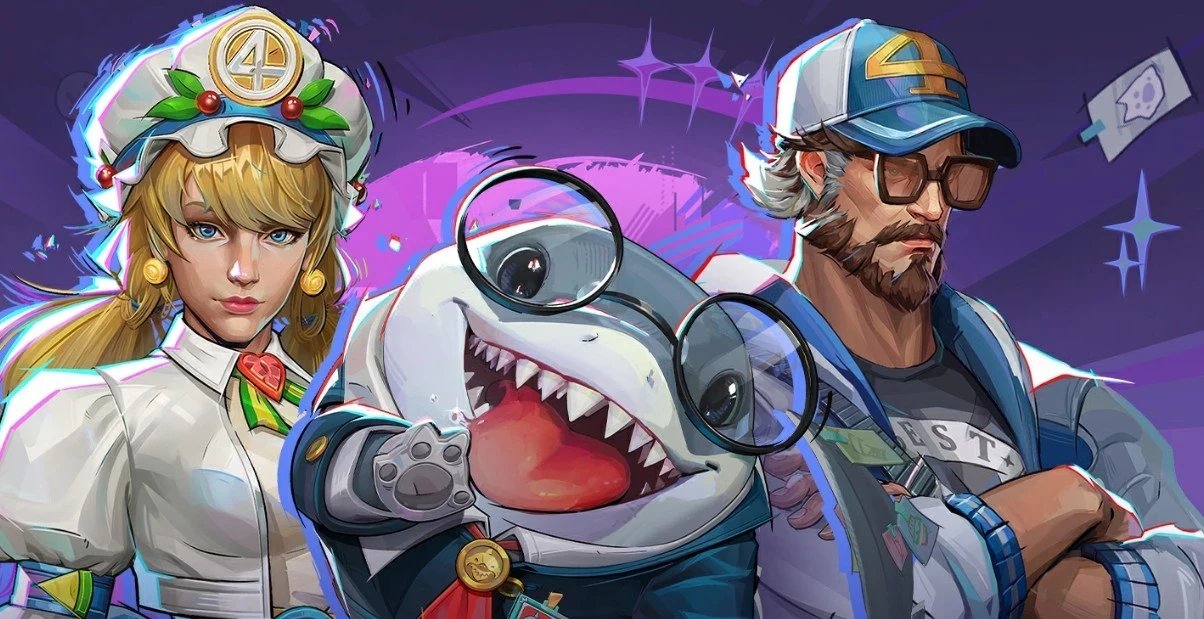 Естественно, без новеньких костюмов обновление не обошлось. Они находятся в мини-вариации боевого пропуска под названием Jeff’s Break Time. Среди бесплатных костюмов есть наряд для акулёнка Джеффа. А в премиальной версии находятся костюмы для Невидимой леди и Мистера Фантастика. Также в магазине можно купить «конфетный» наряд Венома.