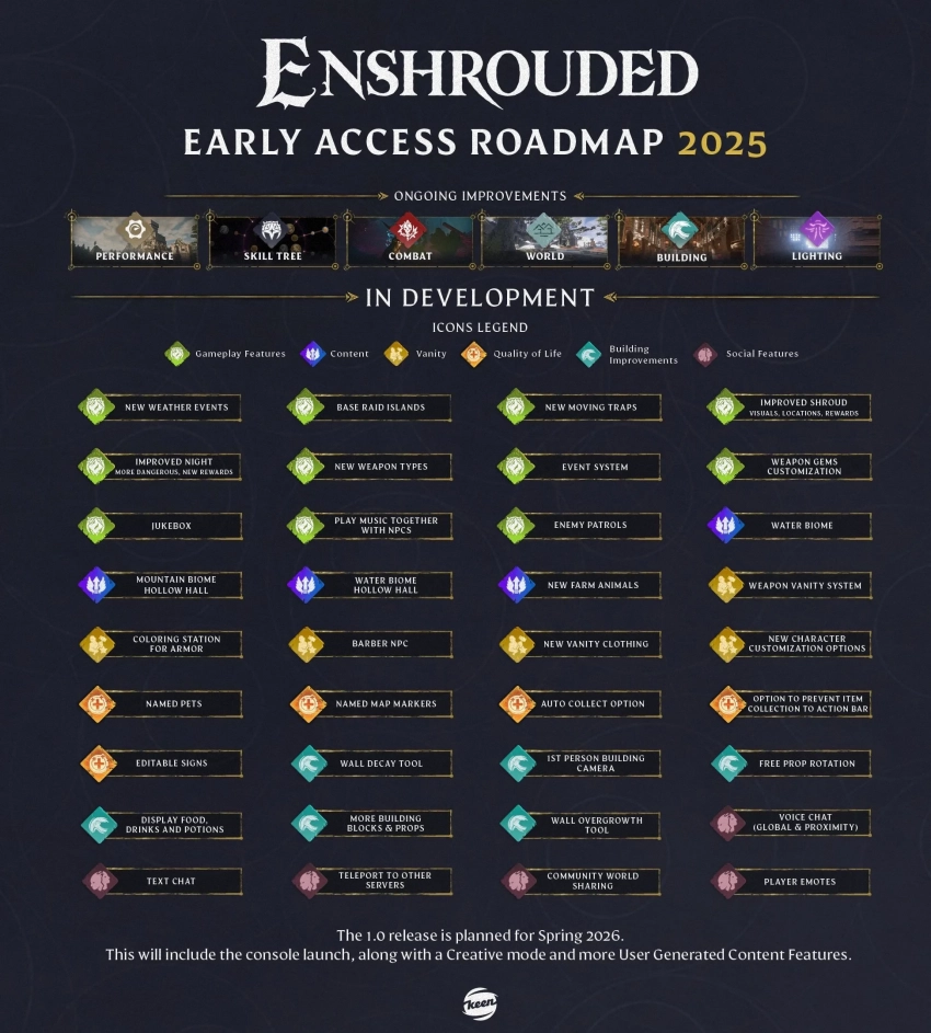 Разработчики также обновили планы развития игры в раннем доступе. И для начала отодвинули сроки полного релиза: игра точно не выйдет в 2025 году, но и до 2027 года авторы тянуть не планируют. Пока что выход из раннего доступа назначен на весну 2026 года.
