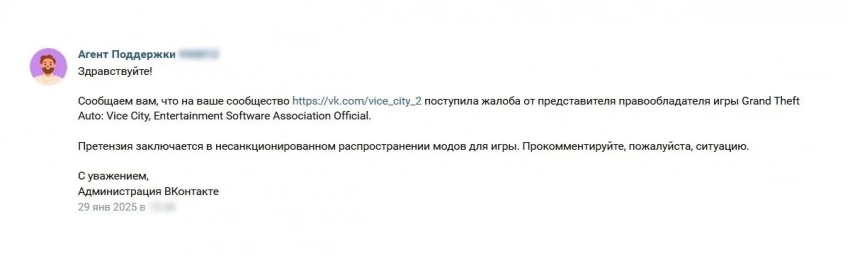 Моддеры пояснили происходящее: они получили серьёзное предупреждение от администрации социальной сети. Entertainment Software Association, которая представляет интересы Take-Two, заявила о нарушении авторских прав, из-за чего команде пришлось почистить информацию и переименовать группу в RevTeam.