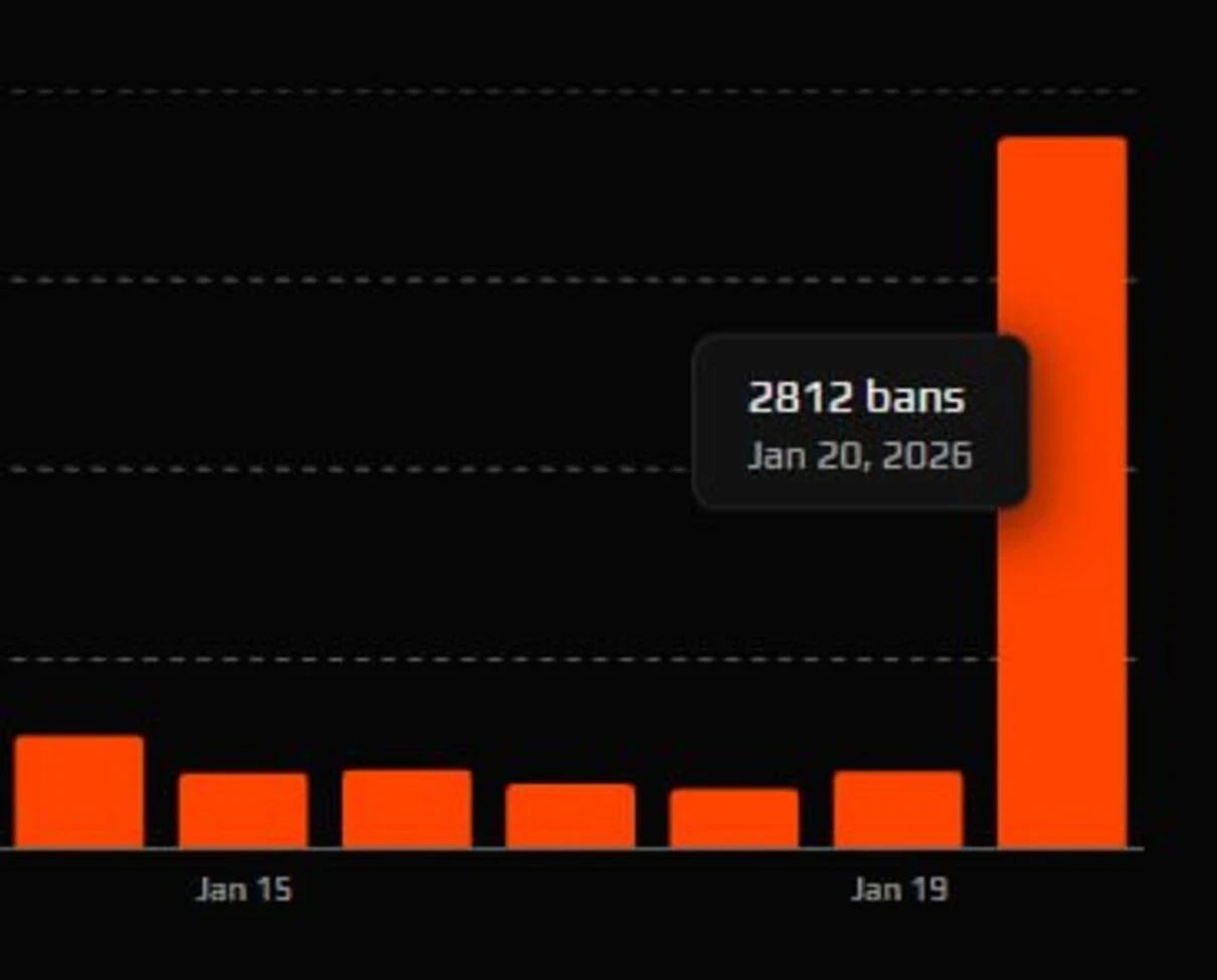 Источник: FACEITПредставители платформы FACEIT опубликовали отчет о работе системы безопасности в Counter-Strike 2 за 20 января. Статистика показывает, что администрация сервиса всерьез взялась за пользователей, создающих новые аккаунты после получения блокировок.