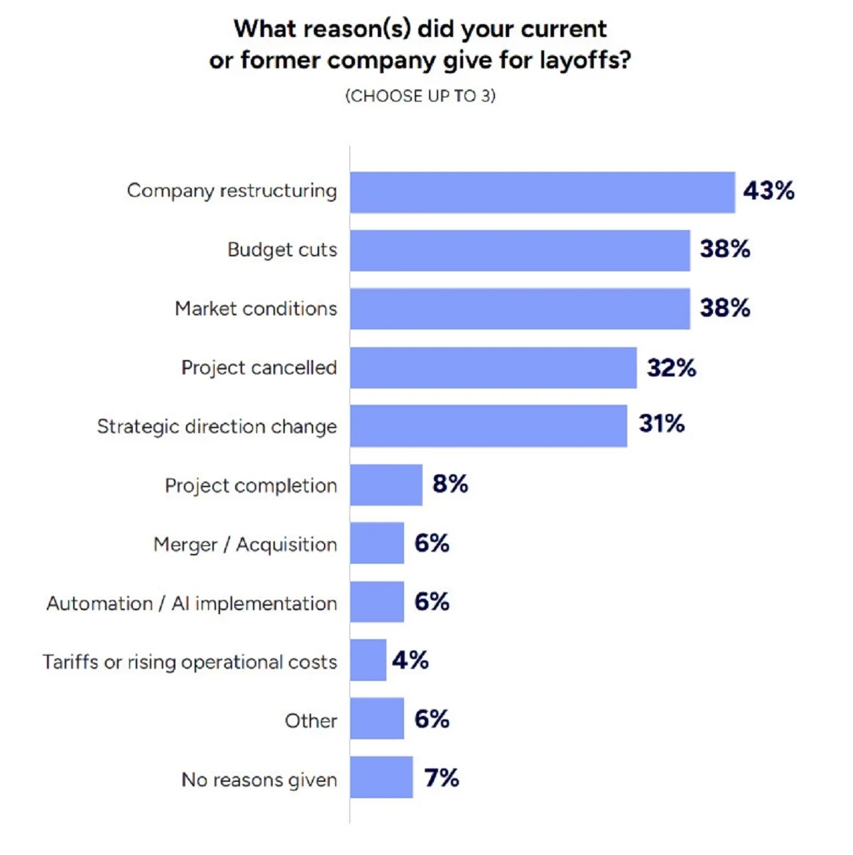 Половина опрошенных разработчиков заявила, что за последний год в их нынешних (или последних) компаниях происходили сокращения. При этом 23% ждут, что в ближайшие 12 месяцев пройдут новые волны увольнений. 47% респондентов оказались более уверенными в стабильности своих рабочих мест.