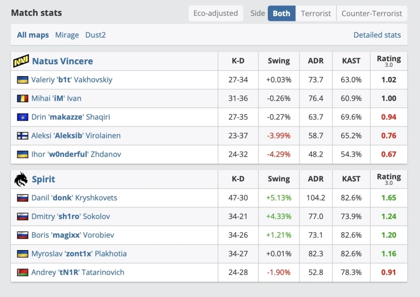 • Ни один игрок NAVI не вышел в «плюс» по статистике. Лучшим в составе стал iM с разницей -5.