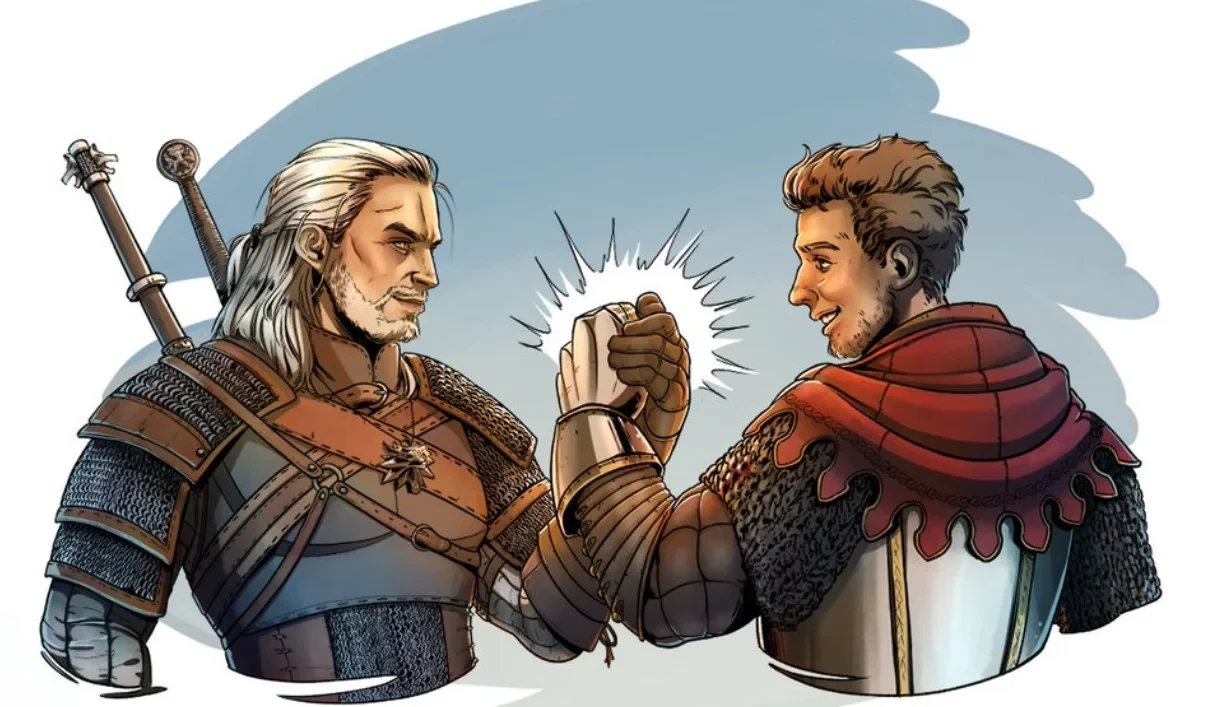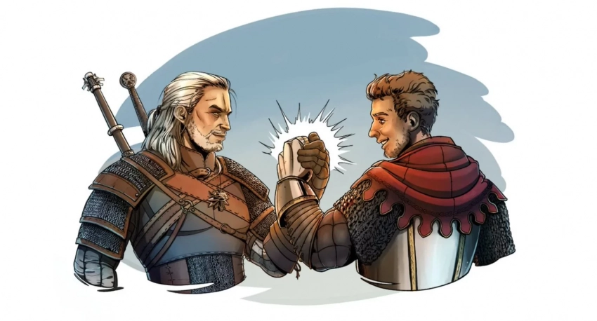 В социальных сетях серии «Ведьмак» был показан арт, на котором Геральт из Ривии в образе из третьей части пожимает руку Индржиху — главному герою Kingdom Come: Deliverance 2. Разработчикам из Warhorse пообещали предоставить серебряный меч, если когда-нибудь они столкнутся с монстрами.