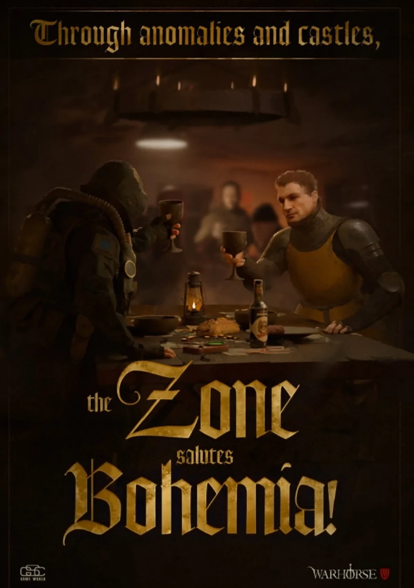 Создатели шутера также показали тематический арт, в котором сталкер из Зоны распивает горячительные напитки со средневековым рыцарем. «Зона приветствует Богемию!», — гласит надпись на иллюстрации.