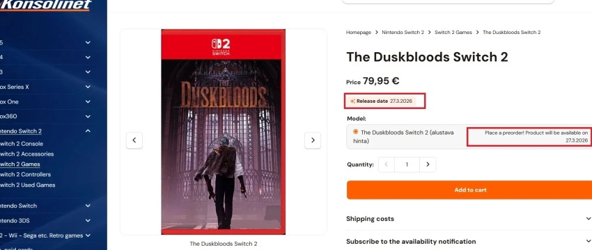 Обложка: скриншот игры The DuskbloodsНа сайте финского ритейлера заметили «дату релиза» экшена The Duskbloods — это 27 марта 2026 года.