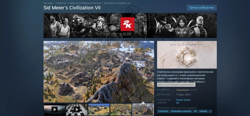 В настоящее время Civilization 7 имеет смешанный рейтинг в Steam. На неё написано более 4 тыс обзоров, из которых только 46% — положительные. С главными претензиями игроков можно ознакомиться здесь.