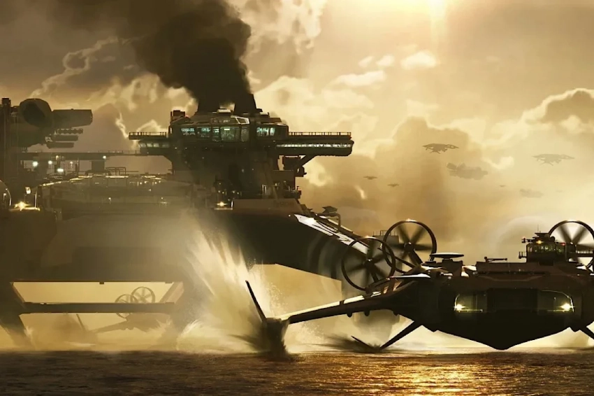 Журнал Empire опубликовал концепт-арт, на котором изображён огромный корабль-фабрика — новое оружие корпорации RDA, доставленное на Пандору. Эта перерабатывающая платформа, адаптированная под военные нужды, станет ключевым противником для защитников планеты.