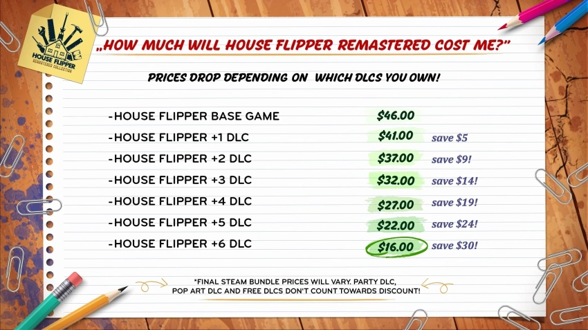 House Flipper Remastered Collection будут продавать за 50 долларов. А обладатели «крупных» DLC получат автоматическую скидку.