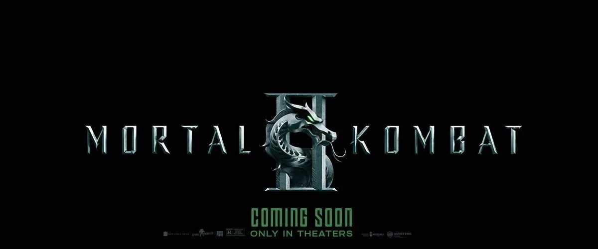 Постер «Мортал Комбат 2» как раз изображает афишу одного из вымышленных фильмов с Джонни Кейджем в главной роли. А кинокомпания заодно показала новый логотип будущего фильма.