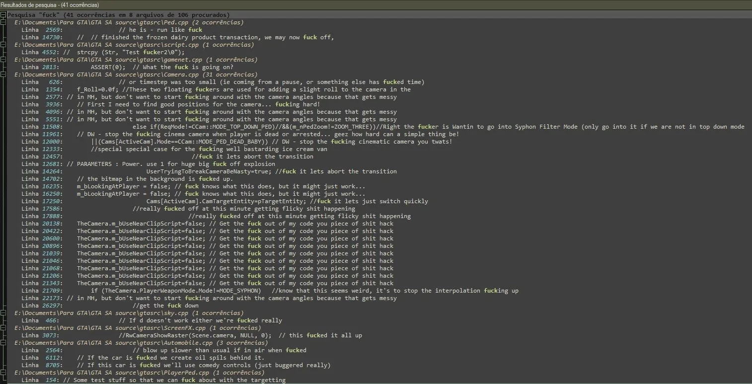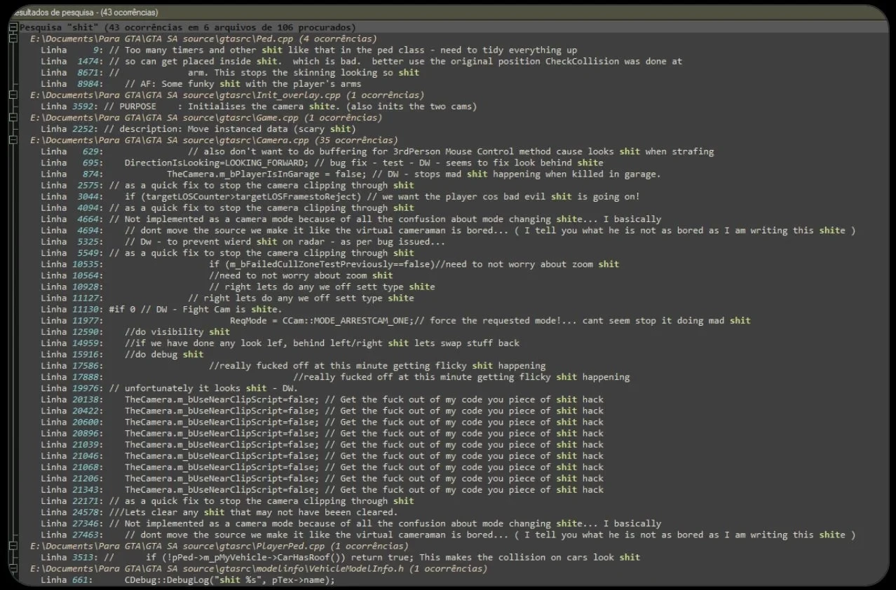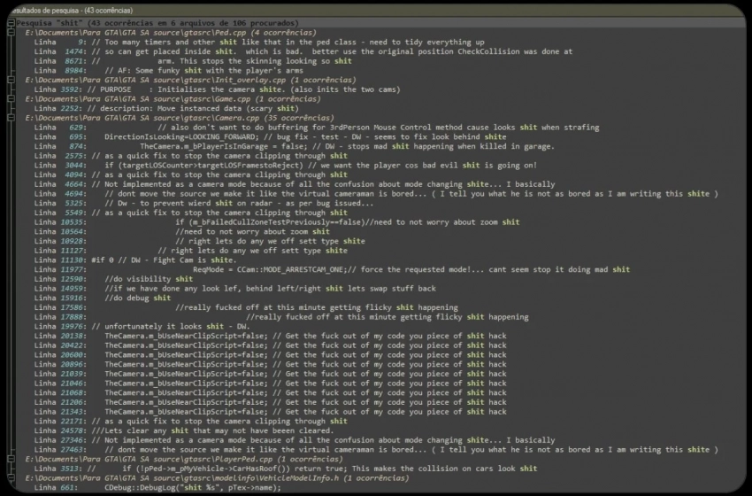 Кроме того, в файлах можно найти комментарии самих разработчиков GTA: San Andreas относительно работы отдельных систем, вышеупомянутую механику разлива бензина — и они в основном весьма нецензурные. Так что о причинах того, почему всё это решили вырезать, долго догадываться не приходится. Но теперь фанаты наверняка попытаются вставить всё это обратно.