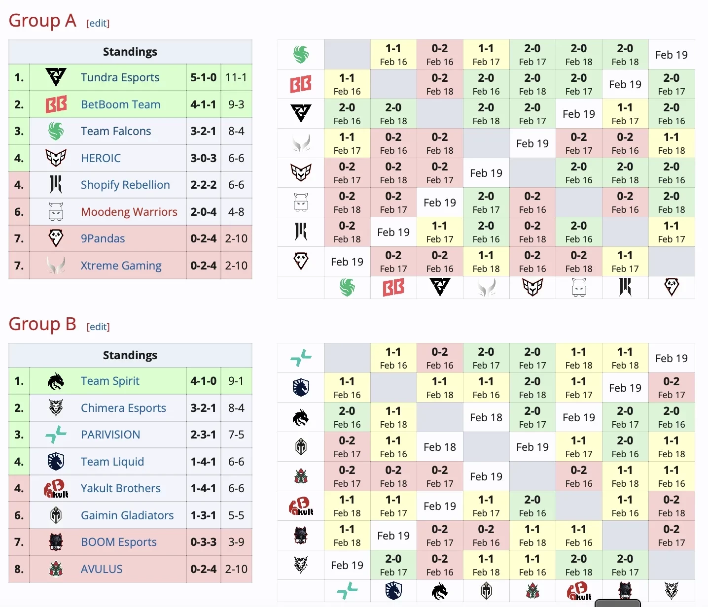 Есть и команды для которых уже потерян шанс на выход в плей-офф: 9Pandas и Xtreme Gaming из группы А и BOOM Esports и AVULUS из группы В.