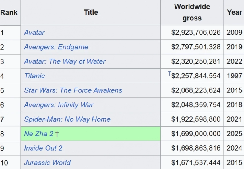 Сообщается, что китайского новинке удалось обойти «Головоломку 2» с её 1,69 млрд долларов и стать самым кассовым анимационным фильмом в истории.