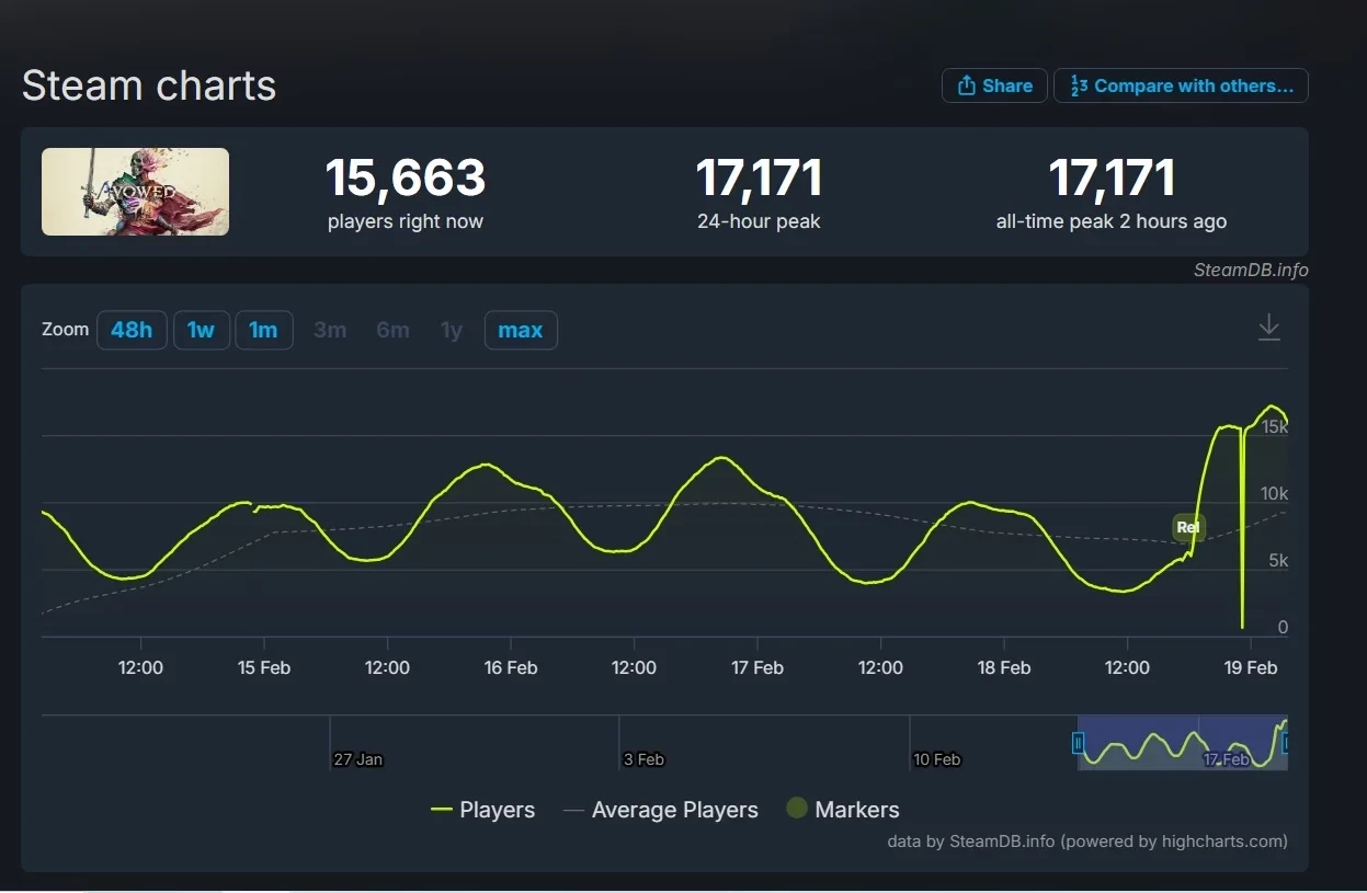 Pillars of Eternity II: Deadfire — 22 724 игроков одновременно;