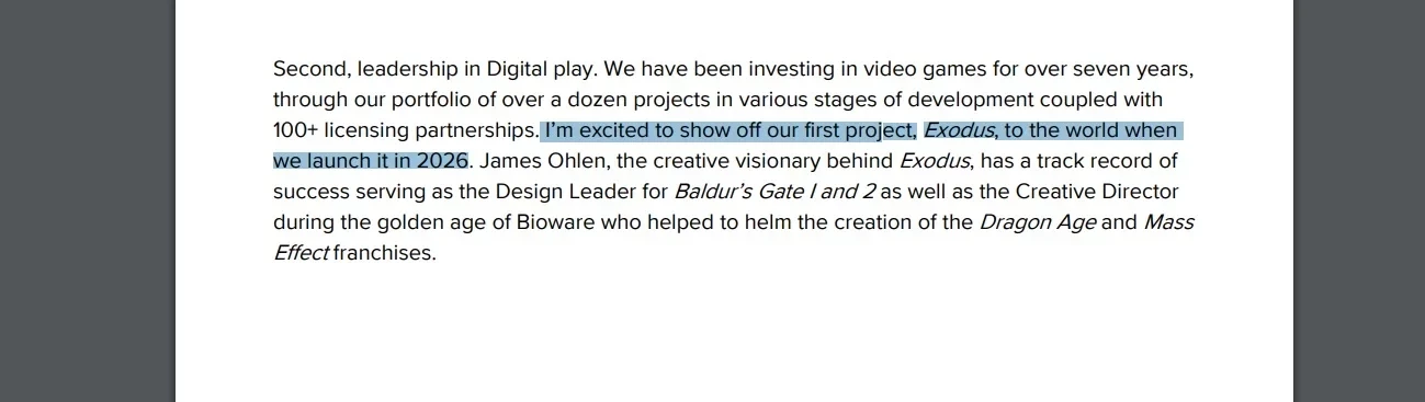 Exodus создаётся для PlayStation 5, Xbox Series и PC. Больше подробностей о грядущей новинке можно найти здесь и здесь. Первый геймплейный трейлер показали в прошлом декабре.