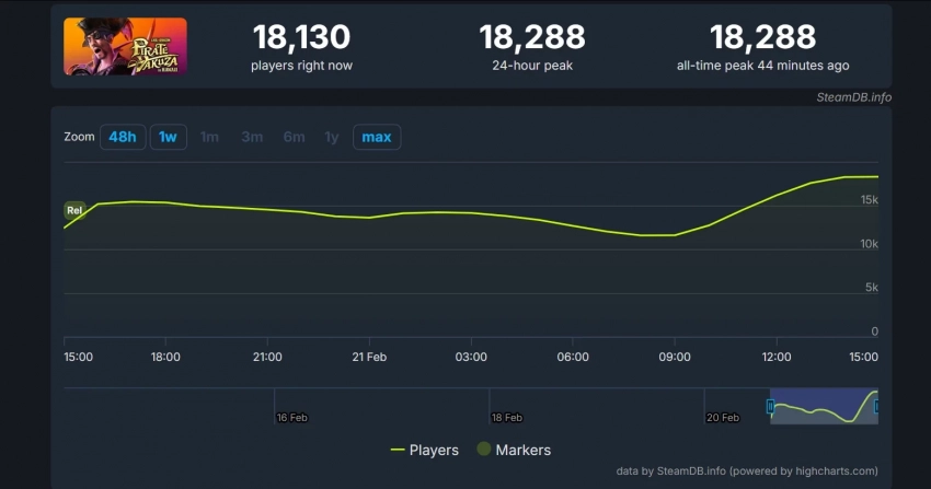 С момента своего релиза Like a Dragon: Pirate Yakuza in Hawaii успела обновить пиковый онлайн Steam. Если сперва он остановился на отметке в чуть более 15 тысяч пользователей, то уже сегодня вечером в игре находилось свыше 18 тысяч геймеров. Вместе с этим повысилось и количество положительных обзоров.