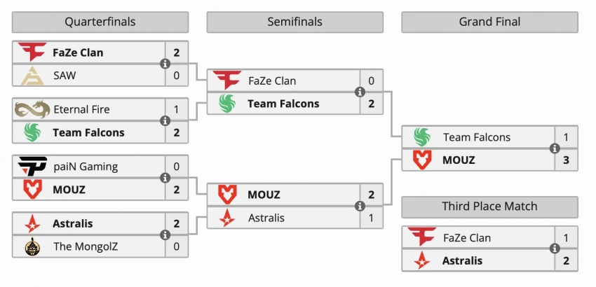 Победители забрали 400 тыс долларов, а проигравшим достались 187,5 тыс долларов. Тройку лидеров замкнула Astralis, которая получила 150 тыс долларов.