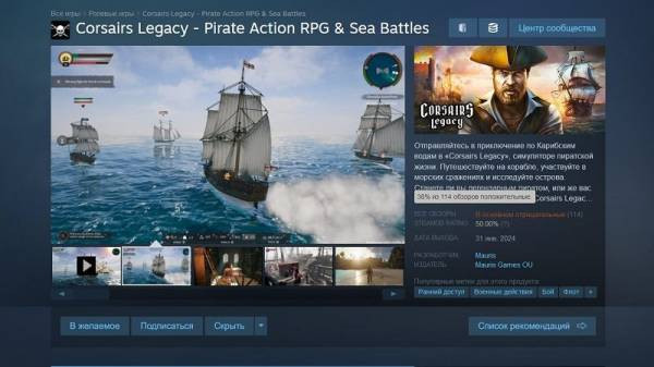 Напомним «Наследие Корсаров» вышла в раннем доступе Steam вчера, 31 января, и стоила на запуске 1990 рублей. С тех пор игра получила чуть более 100 отзывов, но большинство (62 %) из них отрицательные.