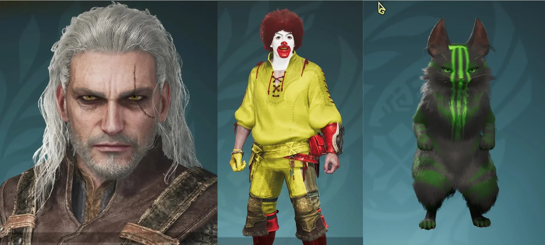 Например, один из игроков создал Геральта из Ривии, который отлично вписывается в охотничий сеттинг, а другой покрасил котика Палико в расцветку энергетика «Монстр».