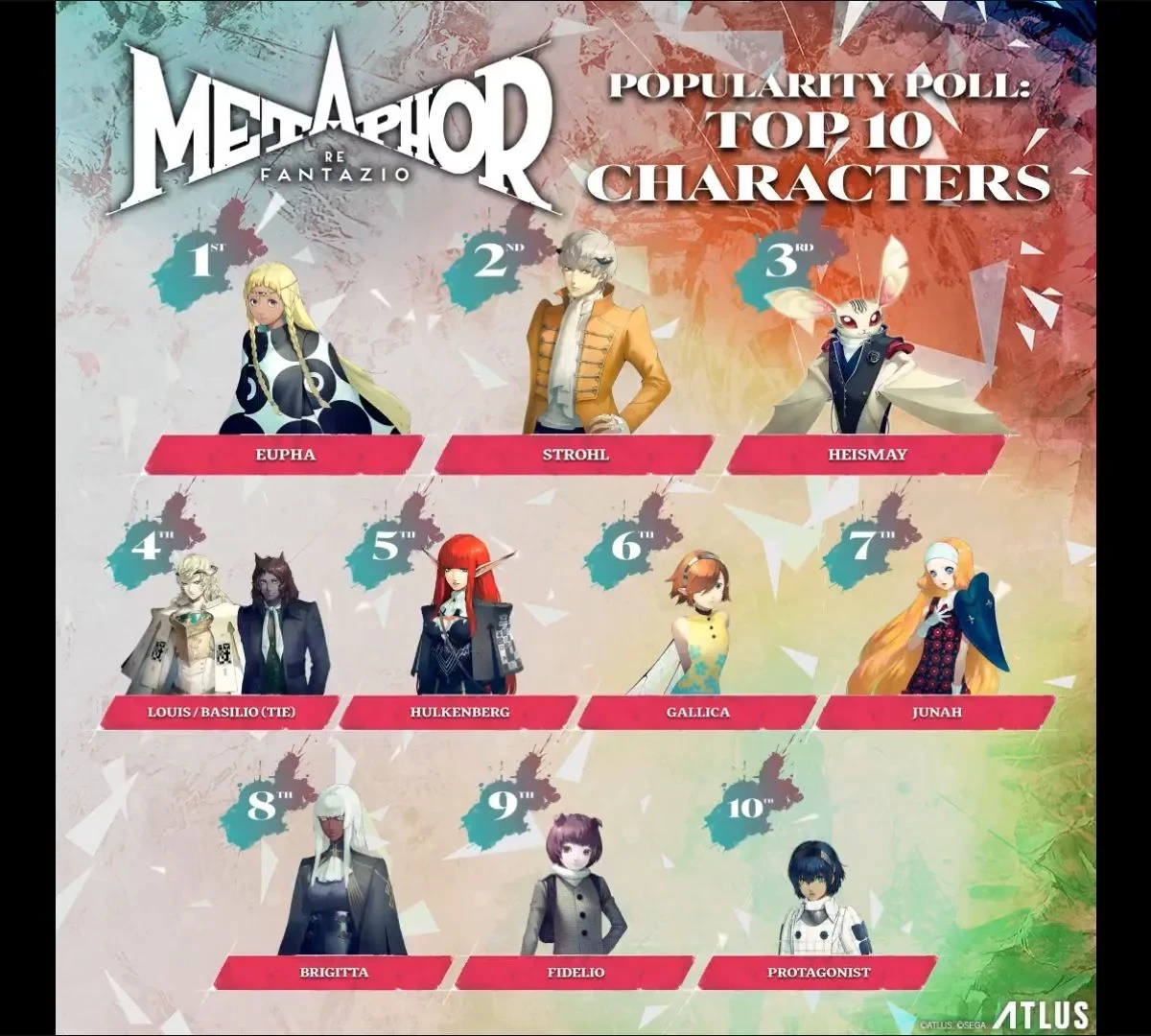 Десятка самых популярных персонажей Metaphor: ReFantazio по западной версии выглядит так: