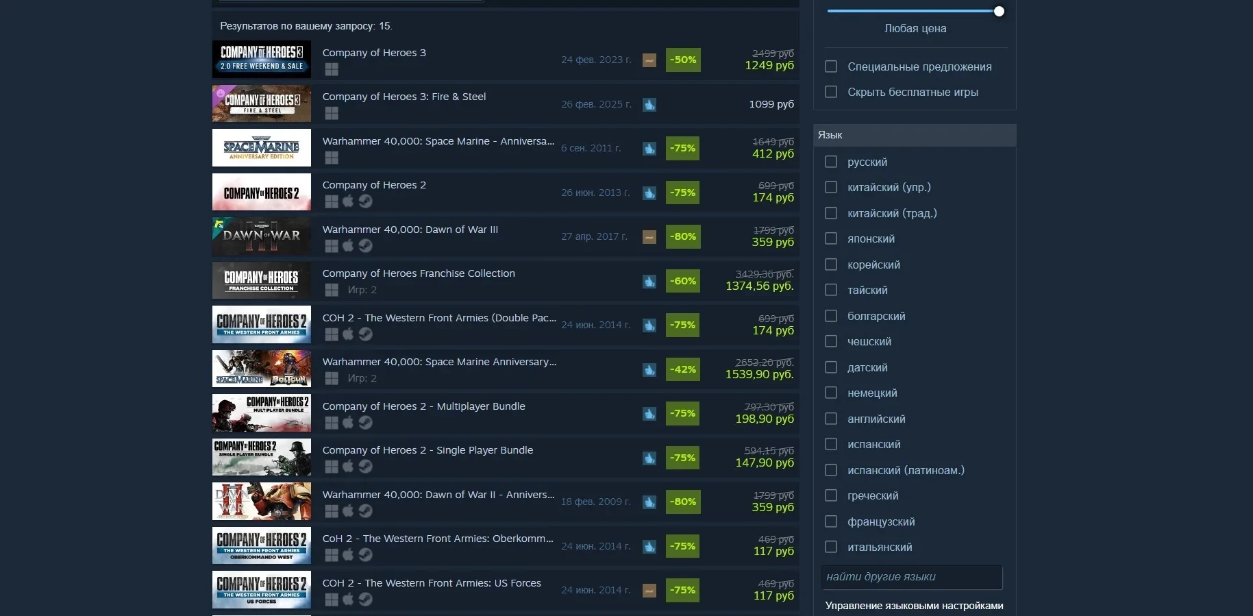 Главная » Статьи » Авторы Company of Heroes 3 и первой Space Marine вернули ряд своих игр в российский Steam