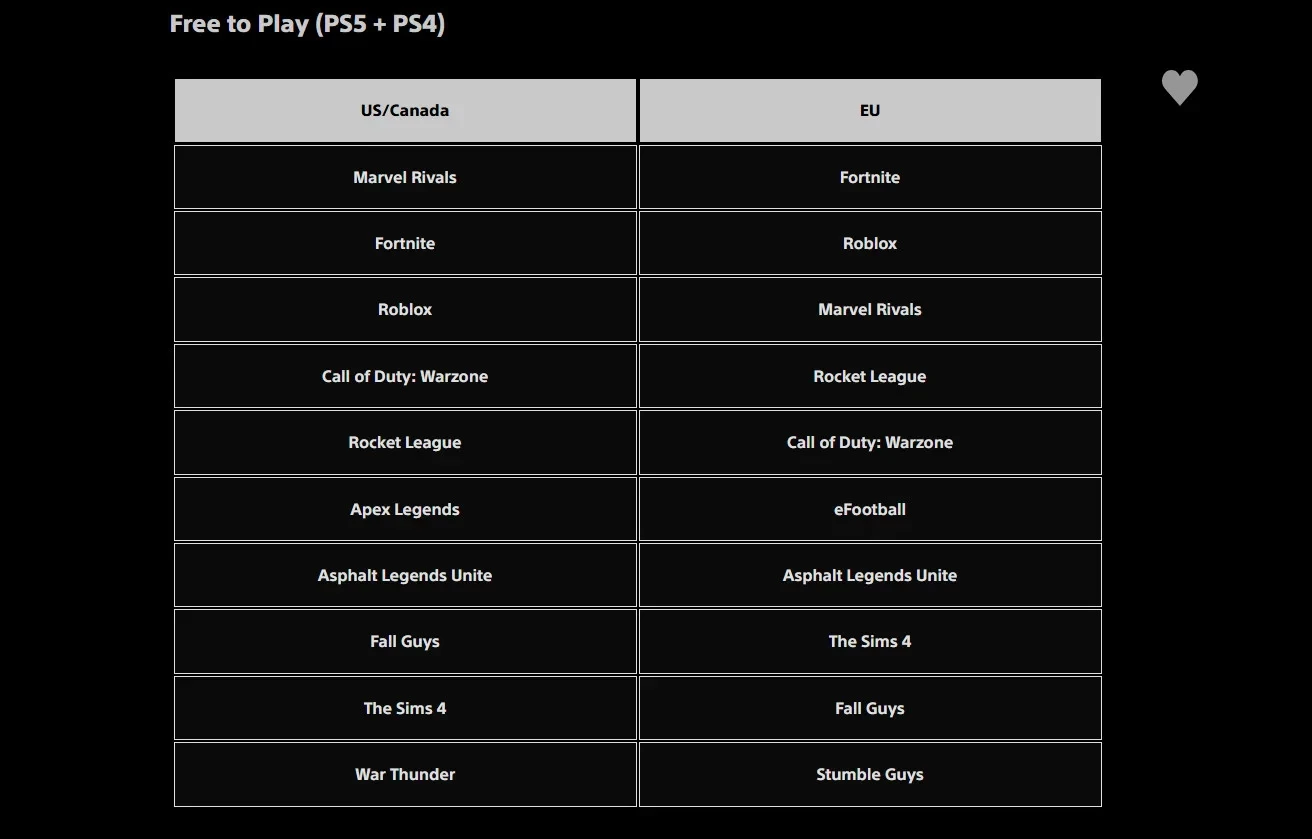 Среди условно-бесплатных игр на PS4 и PS5 в США и Канаде лидирует геройский шутер Marvel Rivals, который расположился на третьей строчке в Европе. Ему удалось обогнать Fortnite и Roblox — эти же игры заняли первые два места в европейском списке.