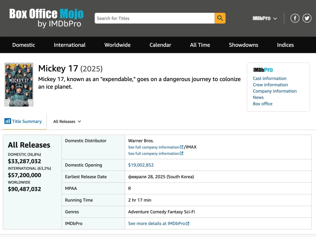 Проваливающийся в прокате «Микки 17» может выйти «в цифре» уже 25 марта