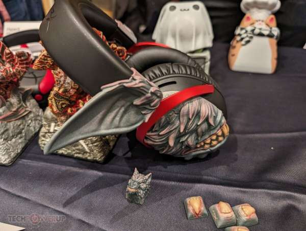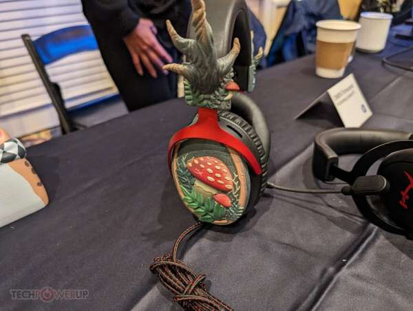 Набор панелей для гарнитуры состоит из накладок, креплений на корпус гарнитуры вдоль дужек наушников и дополнительных креплений на оголовье. Среди представленных нами наборов были: Valkyrie — с ангельскими крыльями на панели гарнитуры; Mythical — с ушами и зубами орка; Werewolf — с когтями; и Something (буквально так), но с сочетанием таких элементов, как грибы и когти дракона.