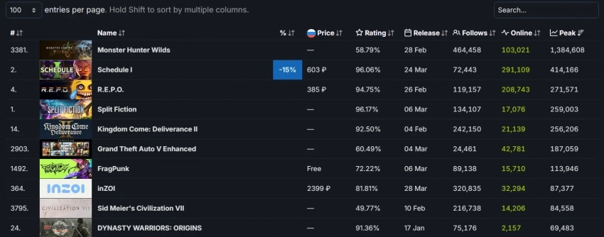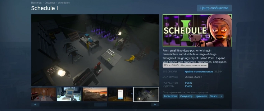 Это позволило Schedule I забралась в топ-3 самых популярных релизов в Steam в 2025 году, обойдя R.E.P.O. (пиковый онлайн 271 571), Split Fiction (пиковый онлайн 259 003) и другие тайтлы.
