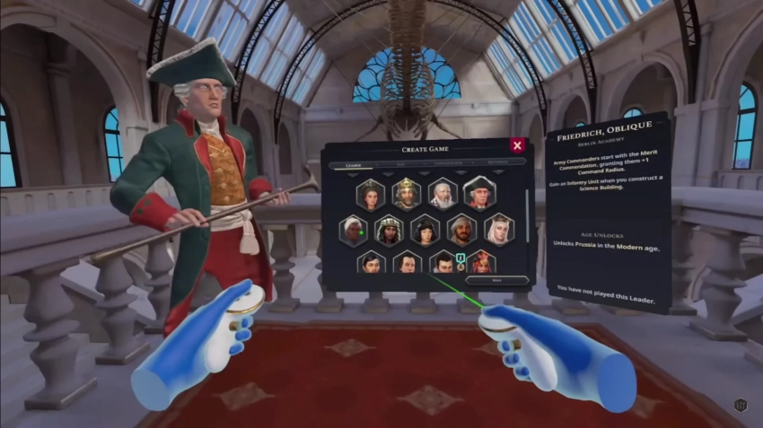 Запуск игры начнётся в виртуальном музее, где игроки найдут стол для игры и доску, на которой предстоит строить свою империю. В процессе исследования мира к столу смогут присоединяться лидеры других цивилизаций — как управляемые ИИ, так и реальные игроки.