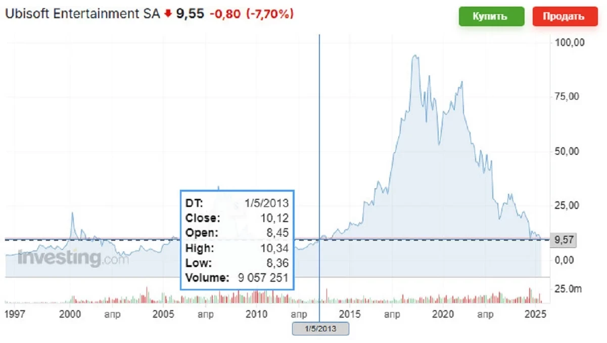 В последний раз подобные значения наблюдались только в 2013 году. А своего пика Ubisoft достигла в 2018 году, когда её акции стоили более 90 евро.