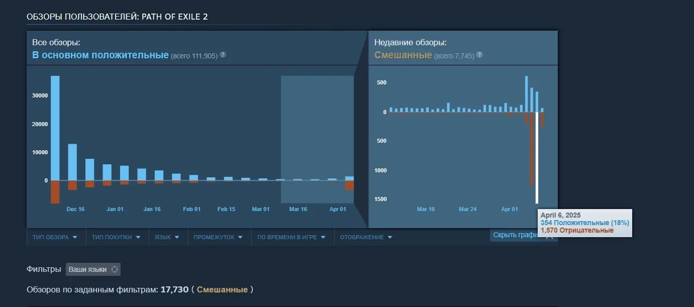 Своё мнение они выразили на форумах и в Steam, где рейтинг Path of Exile 2 за последние 30 дней опустился до «смешанного».