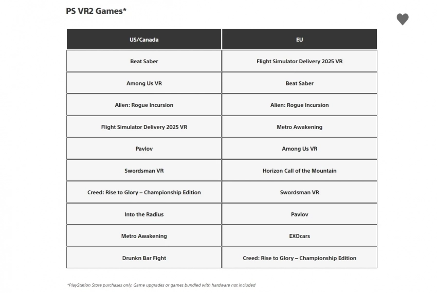 А обладатели шлемов виртуальной реальности PS VR активнее всего загружали Beat Saber в США/Канаде и Flight Simulator Delivery 2025 VR в Европе.