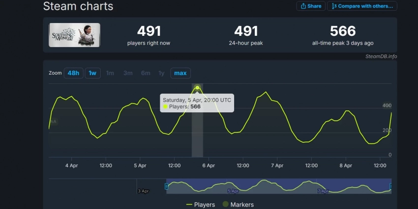 Впрочем, в ближайшие часы пиковый онлайн South of Midnight наверняка вырастет. Посмотрим на показатели игры к завтрашнему утру!