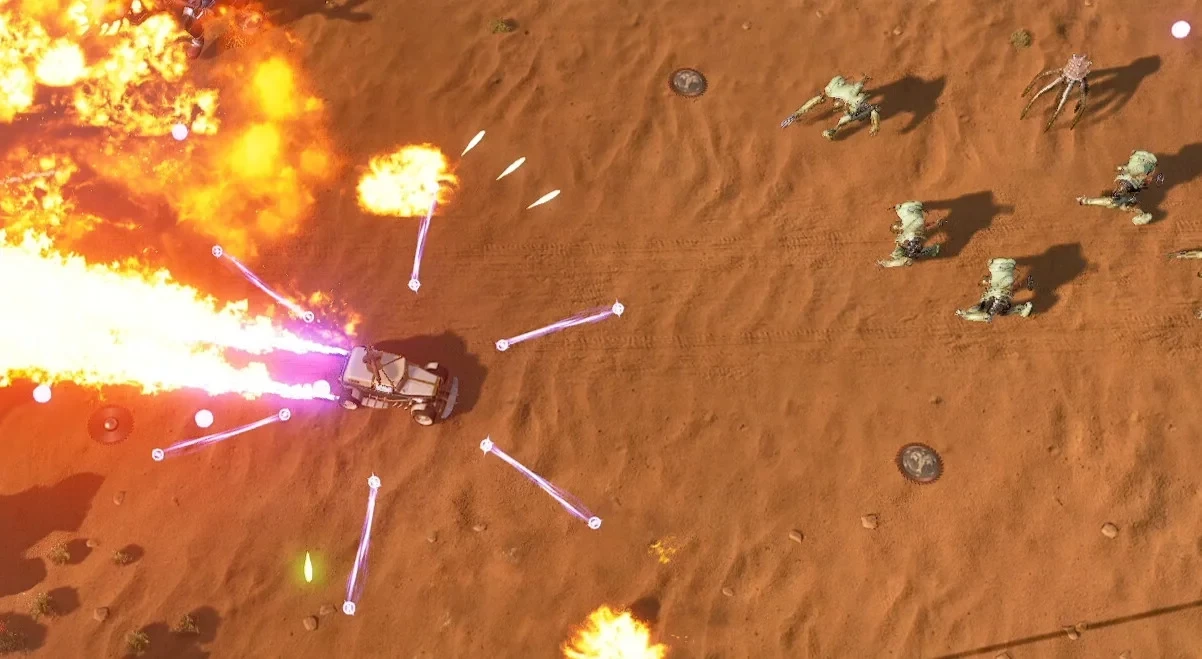 Автомобиль в Driveloop: Survivors — не просто способ передвижения, а полноценное орудие. Тачку можно настраивать и улучшать, чтобы выпускать шкал огня прямо во время езды. Важным инструментом для выживания станет таран, который поможет прорваться сквозь волны врагов или уничтожать массивных боссов.