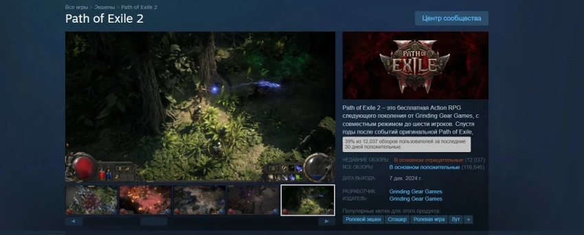 Рейтинг Path of Exile 2 в Steam за последние 30 дней опустился до «в основном отрицательный».