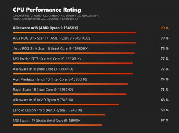 Производительность CPU ноутбука Alienware m18 на базе AMD. Источник изображения здесь и ниже: Notebookcheck