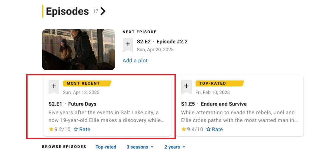 Второй сезон «Одних из нас» состоит из 7 эпизодов. Новые серии будут выходить по воскресеньям (утром в понедельник по МСК), а финал ожидается 25 мая.