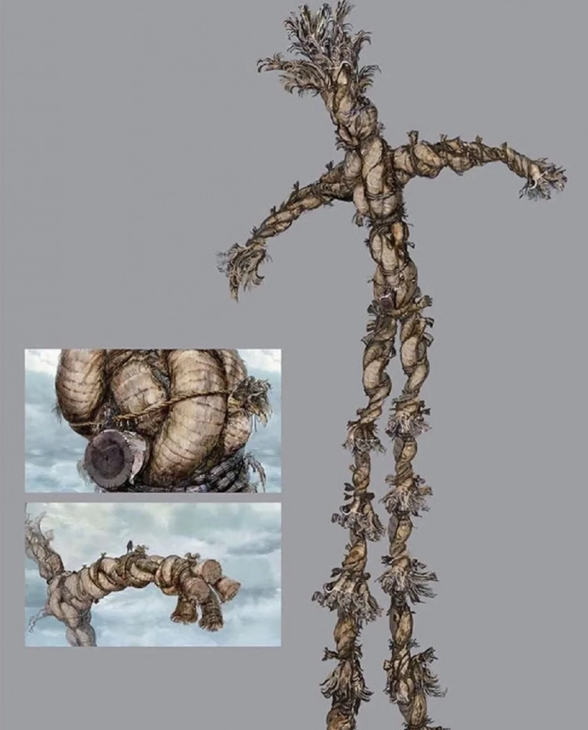 По мнению блогерши, всё встаёт на свои места при взгляде на официальный концепт-арт. На нём можно увидеть персонажа, который взобрался на чучело. Таким образом «битва» с чучелом была бы пространственной головоломкой, когда опасность исходит не от самого существа, а от мелких врагов и возможности упасть в пропасть.