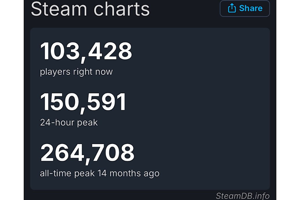 Отметим, что максимальная отметка составляет более 264,7 тыс. Произошло это в феврале 2024 года — в день релиза. Далее онлайн начал стремительно падать и не превышал отметку в 5 тысяч с ноября прошлого года.