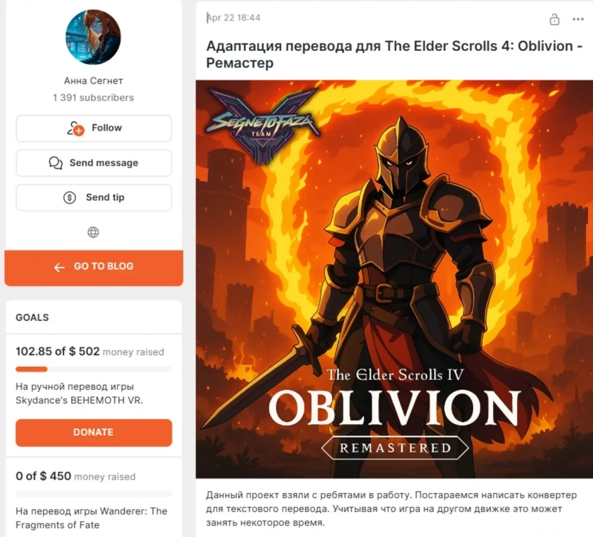 Самое интересное о кино на YouTube канале Игромании!Обложка: скриншот The Elder Scrolls 4: Oblivion RemasteredРемастер The Elder Scrolls 4: Oblivion получит неофициальную русскую локализацию — об этом объявила переводчица Анна Сегнет (Segnetofaza) на форуме Zone of Games. Напомним, что Bethesda выпустила ремастер без поддержки русского языка.