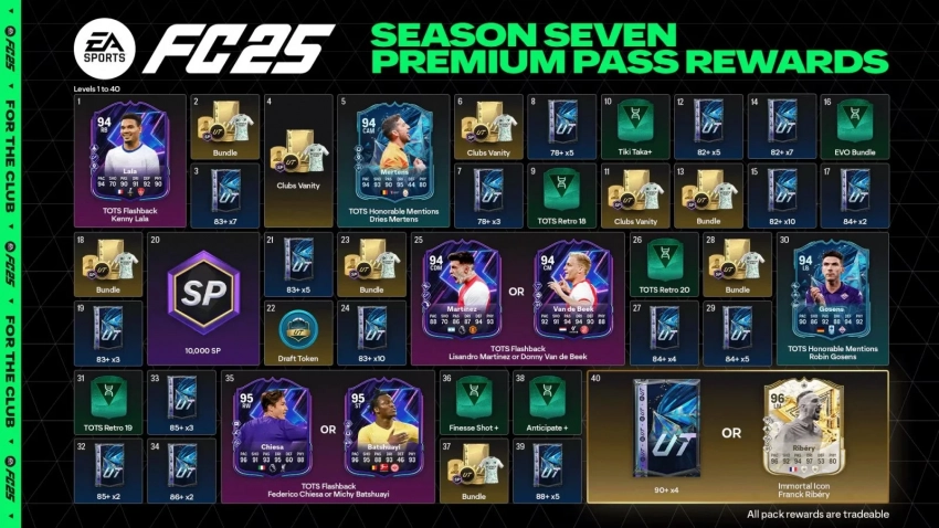 Пропуск стоит 500 тысяч внутриигровых монет UT, или же его можно купить за 1000 очков FC (около 10 долларов). В нём 40 уровней, и главной наградой служит эксклюзивный легендарный игрок мюнхенской «Баварии» Франк Рибери с рейтингом 96.